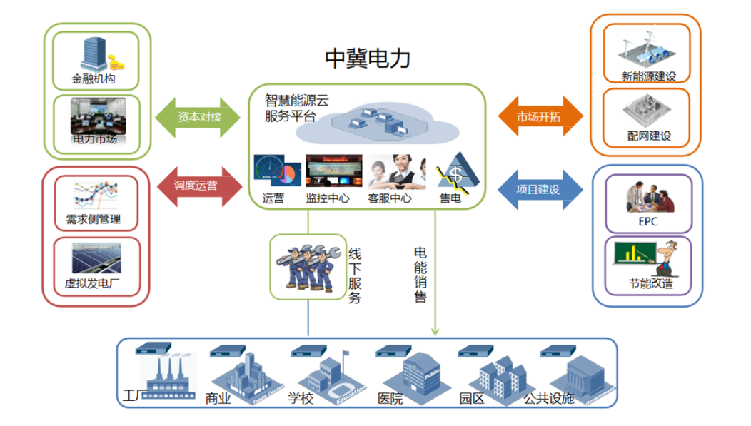 中冀電力集團(tuán)智慧能源股份有限公司,是河北省重點高新技術(shù)企業(yè),是一家專業(yè)的智慧能源系統(tǒng)服務(wù)商。公司積極響應(yīng)國家電網(wǎng)由電能供應(yīng)商到泛在物聯(lián)網(wǎng)服務(wù)提供商的轉(zhuǎn)型戰(zhàn)略,立足自身優(yōu)勢,以智能電網(wǎng)、大數(shù)據(jù)、分布式云儲存、移動互聯(lián)網(wǎng)為支撐手段,構(gòu)建以電為中心,智慧應(yīng)用的新型能源消費(fèi)市場,為客戶提供多元化的綜合能源服務(wù),促進(jìn)企業(yè)健康可持續(xù)發(fā)展。