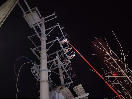 到達(dá)現(xiàn)場(chǎng)后,馬工邊聽現(xiàn)場(chǎng)電工說(shuō)明情況,邊勘察現(xiàn)場(chǎng),對(duì)柱上變壓器的跌落保險(xiǎn)進(jìn)行檢查,確認(rèn)安裝位置。